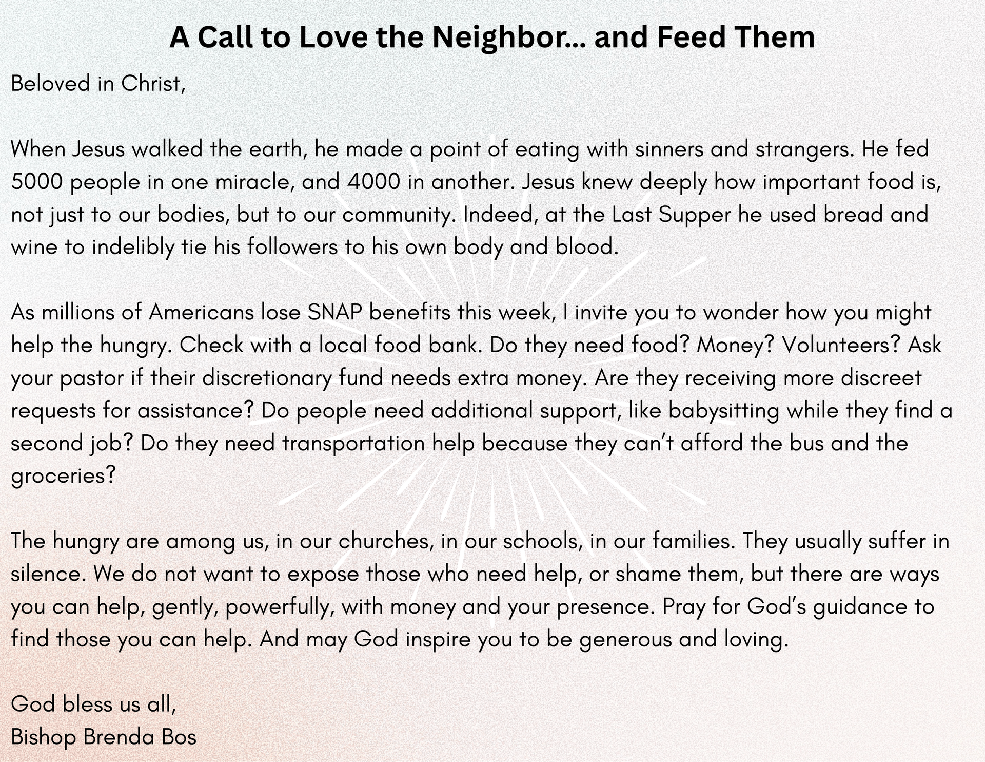 Bishop Brenda Bos's Call to Love the Neighbor... and Feed Them