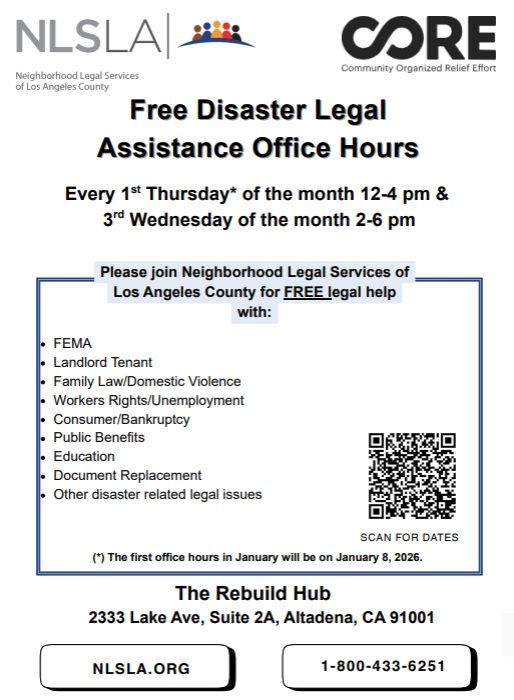 NAMI San Gabriel Valley will begin to host monthly peer support groups for those affected by the Eaton Fire, offering a space for shared experiences and healing held every third Tuesday of the month virtually via Zoom. These gatherings will provide an opportunity to process ongoing challenges with understanding facilitators—many of whom have firsthand experience navigating similar hardships. Support group schedules may be adjusted based on interest and need.